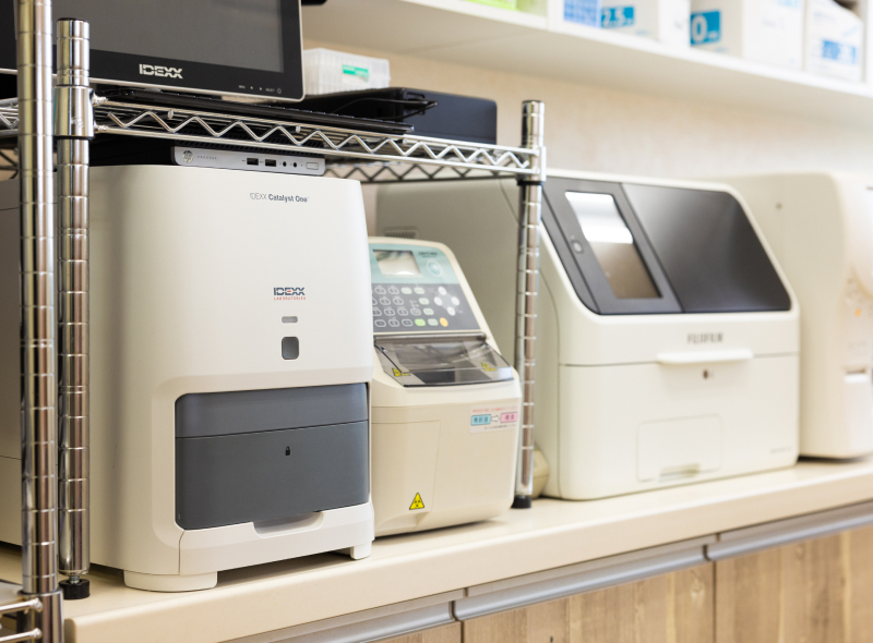 病気の早期発見と、ワンちゃんネコちゃんにより負担がかからない治療のため、検査用途に合わせて数台の機器をご用意しています。