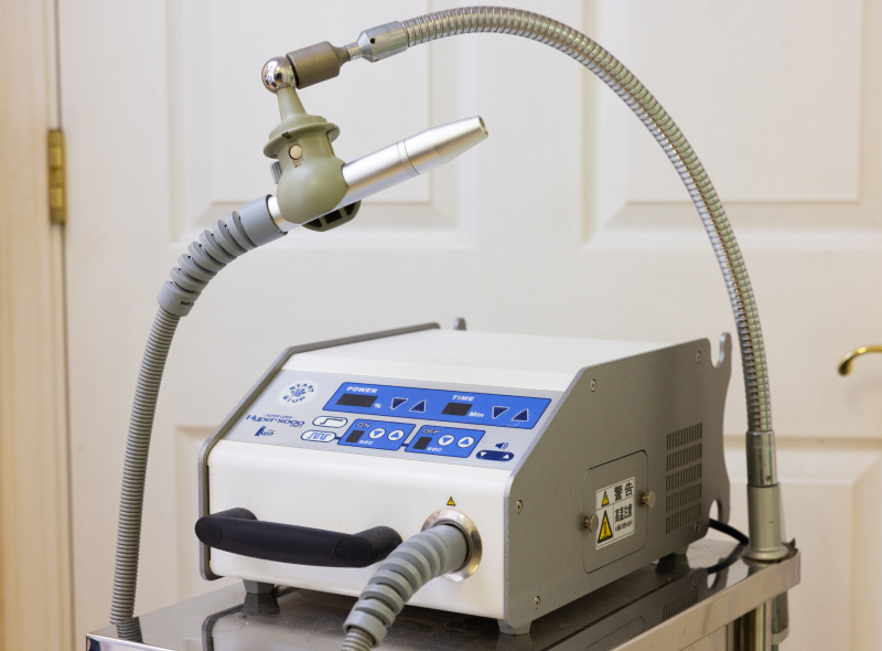 近赤外線を使ったレーザー治療となります。慢性疼痛性の疾患に対して患部に直接照射することで温熱効果を与え 、消炎・鎮痛、創傷治癒、神経再生を促すことができます。